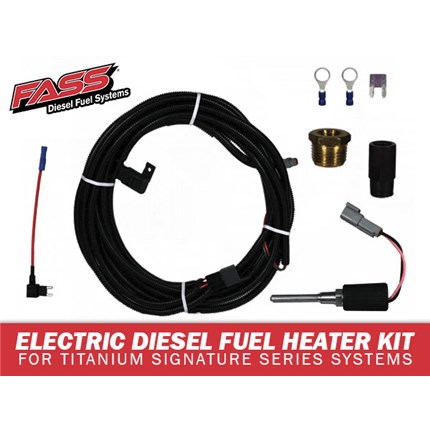 FASS Electric Diesel Fuel Heater KitFor Use w/FASS Titanium Series Fuel PumpsThe FASS Electric Heater Kit HK1001 is an optional heater is intended as an upgrade for FASS Systems being used in extremely cold climates. Each FASS Titanium Series pump has 2 ports for electric heaters which help aid in cold weather starts and keep fuel from gelling while driving during extremely cold temperatures. The heater(s) will begin warming once the key is in the on position and will automatically shut off after the proper temperature has been reached. While FASS Fuel Pumps are built to start your diesel engine in the coldest of temperatures, adding a FASS Electic Heater Kit will have you geared up for whatever mother nature throws your way!