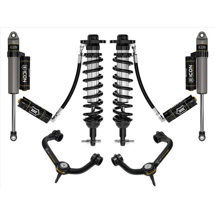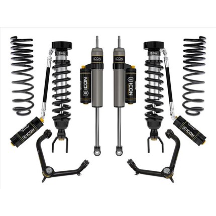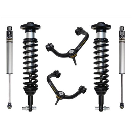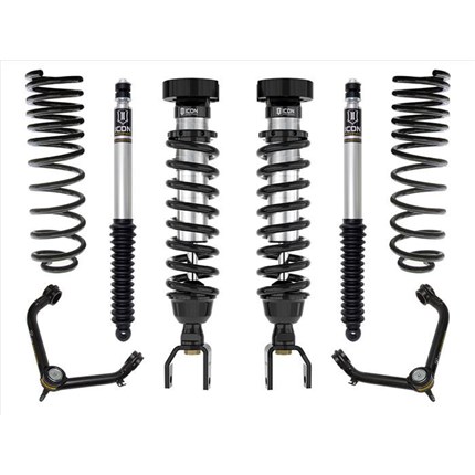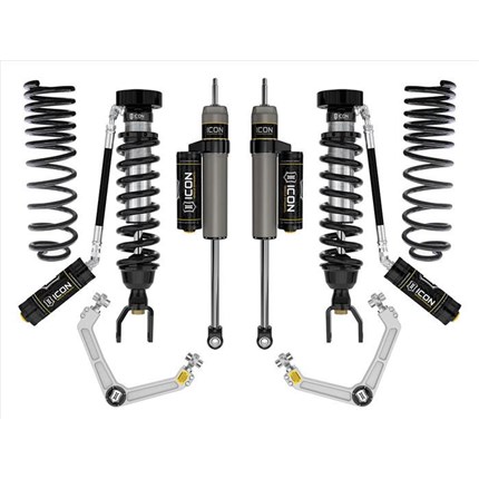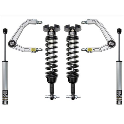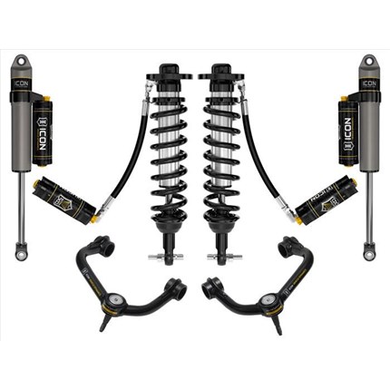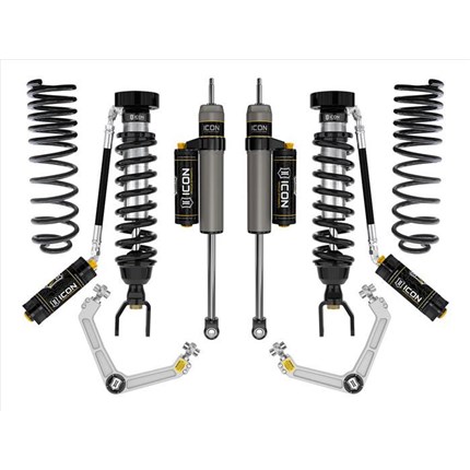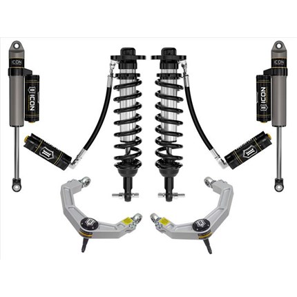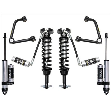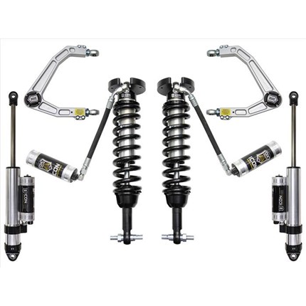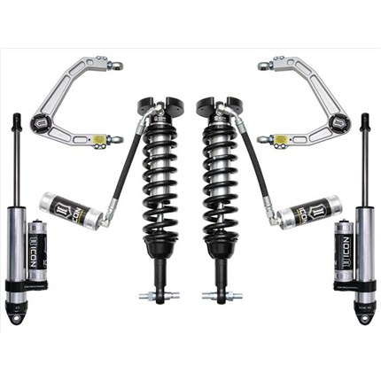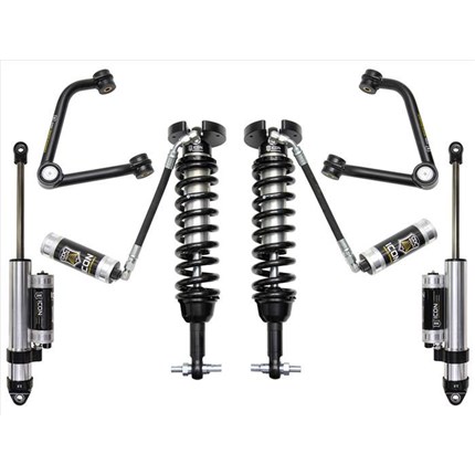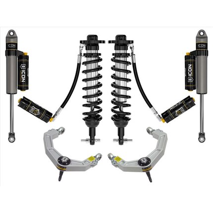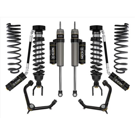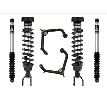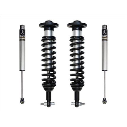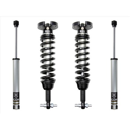 ICON Vehicle Dynamics suspension systems are designed with maximum performance and the serious driver in mind. ICON engineers’ primary focus is to increase wheel travel and damping ability, which translates into outstanding vehicle control and ride quality both on and off-road. The system includes vehicle-specific tuned 2.5� coilover shocks featuring an internal reservoir for exceptional cooling properties and ICON-engineered Eibach coil springs for superior vehicle “feel� through the range of travel. These coilovers are also height adjustable from 0-2.75� allowing the use of larger, more aggressive wheel and tire combinations. ICON 2.0 Aluminum Series monotube rear shocks utilize a vehicle-specific valving that balances the performance of the truck from front to rear. The ICON Vehicle Dynamics suspension system is an excellent choice for those drivers looking to enhance the capabilities of their pickup on the road as well as in the dirt.
