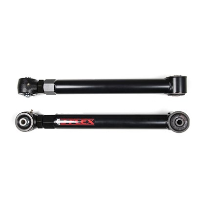 Your Jeep Wrangler JL will benefit from JKS J-Flex adjustable rear lower control arms. They adjust for proper geometry while increasing driving comfort on the road. J-Flex arms are built from heavy duty 2” OD x .250-wall DOM tubing and CNC bent for additional clearance. At the axle mount, J-Flex arms feature premium OE style rubber bushings to absorb noise and reduce vibrations for a comfortable, quiet ride and maintenance-free operation. At the frame-side mount, J-Flex arms incorporate a unique hex-shaped threaded bung for easy adjustment of the forged flex end and 1-1/4”-12 threads jam nut Flex end design allows for 30-degrees of misalignment (15 in either direction) for impressive articulation and are greaseable to ensure long bushing life. When the time comes, JKS flex ends are rebuildable. As with all JKS control arms, these J-Flex lower control arms come finished in a durable gloss black powder coat finish and are backed by JKS’s limited lifetime warranty. Sold in pairs.