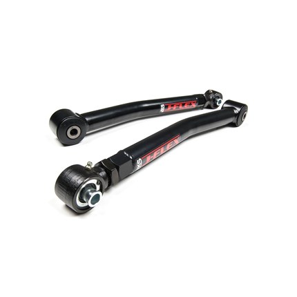 Your Jeep Wrangler JL and Gladiator JT will benefit from JKS J-Flex adjustable rear upper control arms. They adjust for proper geometry while increasing driving comfort on the road. J-Flex arms are built from heavy duty 2” OD x .250-wall DOM tubing and CNC bent for additional clearance. At the axle mount, J-Flex arms feature premium OE style rubber bushings to absorb noise and reduce vibrations for a comfortable, quiet ride and maintenance-free operation. At the frame-side mount, J-Flex arms incorporate a unique hex-shaped threaded bung for easy adjustment of the forged flex end and 1-1/4”-12 threads jam nut Flex end design allows for 30-degrees of misalignment (15 in either direction) for impressive articulation and are greaseable to ensure long bushing life. When the time comes, JKS flex ends are rebuildable. As with all JKS control arms, these J-Flex lower control arms come finished in a durable gloss black powder coat finish and are backed by JKS’s limited lifetime warranty. Sold in pairs.