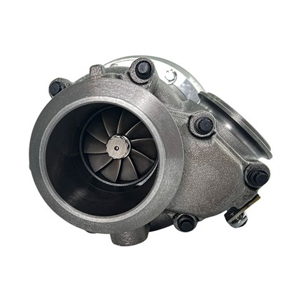 Improve your 7.3 Powerstroke engine's performance with the KC300x Gen 3 Stage 3 Turbo. This turbo features a 4" ported housing with drilled anti-surge for better flow, a completely redesigned Gen 3 7x7 SXE style compressor wheel with extended tip technology and with upgraded aero to aid in quick spool, and a SXE style turbine wheel with a thicker shaft inside of completely redesigned compressor and turbine housings.