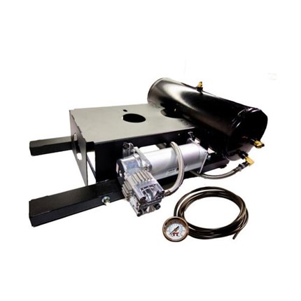 Kleinn USTL-OBA On-Board Air System - is the perfect solution for trucks with larger tires and an unused spare tire well who need an onboard compressor. This on-board air system is a Bolt-On kit and generally does not need any modifications for installation. The on-board air compressor and 3-gallon air tank mount on a bracket that is kept in place by the stock spare tire winch. This mounting bracket is powered coated for durability and constructed at Kleinn's facility in Tucson, Arizona. This 200 PSI / 100% Duty Cycle 6450RC compressor will easily power air tool and effortlessly inflate 37? tires & air ride suspension kits. Included with this kit is airline, wiring, a hardware kit, quick connect tire inflator and storage bag for all the accessories.