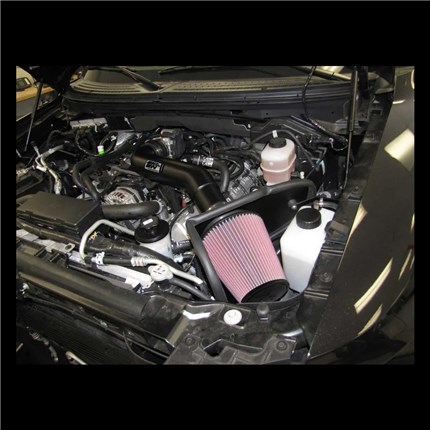 The K&N 77-2579KTK high-flow performance air intake system is a free-flowing, mandrel-bent aluminum tube air induction system designed to fit some Ford F150 SVT Raptor models. The restrictive factory air filter and air intake housing on your vehicle are replaced by this K&N air intake system which is designed to dramatically reduce air flow restriction as it smoothes and straightens air flow. The improved air flow allows your engine to inhale a larger amount of air than it would from the stock air intake. More air means more usable power and acceleration throughout your engine's RPM range. The 77-2579KTK air intake comes with a K&N high-flow air filter, heat shield and replacement coolant reservoir that installs into the previous air box space. Air is directed through the intake tube into the engine's throttle body for a guaranteed power gain. The intake tube has an attractive textured black powder-coat finish that's made to last and it accommodates the factory mass air sensor, EVAP hose and crank case vent hose. The oversized cone shaped air filter can be used for up to 100,000 miles before servicing is needed depending on driving conditions. This air intake is relatively easy to install usually in 90 minutes or less using existing factory mounting points. The tools needed are a screwdriver, ratchet set and several wrenches.