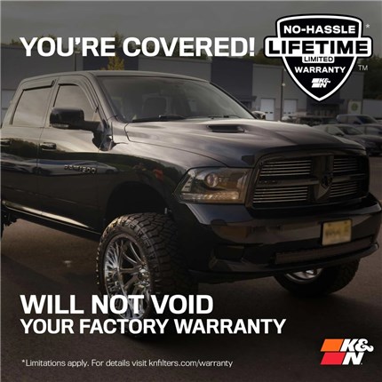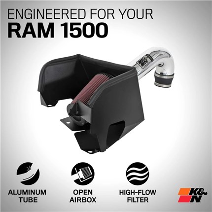 K&N is the inventor of the Air Intake System and has over 50 years of experience in the performance filtration industry. Proudly designed and manufactured in the USA, this premium cold air intake system is specifically designed for your RAM 1500 Truck and is dyno tested to provide a guaranteed increase in horsepower. It features a high flow intake tube, custom heat shield, and oversized K&N Washable High-Flow Cotton Air Filter for ultimate airflow. This Intake system replaces the restrictive OEM air box to provide an improved driving experience for daily driving or towing. It installs easily in about 60 minutes and is backed by a No-Hassle Lifetime Limited Warranty and will not void your factory warranty.