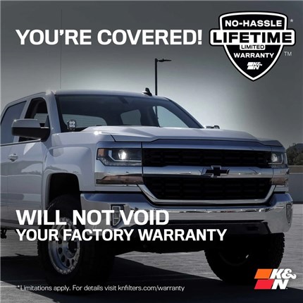 K&N is the inventor of the Air Intake System and has over 50 years of experience in the performance filtration industry. Proudly designed and manufactured in the USA, this premium cold air intake system is specifically designed for your Avalanche, Escalade, Sierra 1500, Silverado 1500, Suburban 1500, Tahoe, Yukon, and is dyno tested to provide a guaranteed increase in horsepower. It features a high flow intake tube, custom heat shield, and oversized K&N Washable High-Flow Cotton Air Filter for ultimate airflow. This Intake system replaces the restrictive OEM air box to provide an improved driving experience for daily driving or towing. It installs easily in about 60 minutes and is backed by a No-Hassle Lifetime Limited Warranty and will not void your factory warranty.