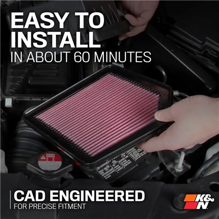 57-series OEM air box intake systems include a washable, reusable High-Flow Air Filter paired with a CAD-designed high airflow intake tube, and is designed to be a simple, cost-effective performance upgrade. The included oiled cotton filter is a direct replacement for your factory filter, drops easily into the factory air box, can go up to 100,000 miles between filter services under normal highway driving conditions, and offers K&N's industry-leading engine protection. Each 57-series OEM air box intake system is designed for specific vehicle applications to ensure a precise fit, and can typically be installed in less than 60 minutes with only standard hand tools. Buy with confidence under the K&N No-Hassle Lifetime Limited Warranty. Legal in all 50 States.