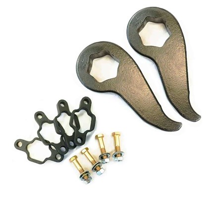 Kryptonite leveling kits are the fastest, safest, least expensive way to bring the front of your GM Truck 2 inches closer to the rear. Our torsion keys are designed to grab the "FLAT" of the torsion bar for a tighter, sturdier fit. Kryptonite torsion keys are forged, making them 25% stronger than factory and primed to last the life of your vehicle. The adjustable torsion key provides 1" to 2" of lift and gives clearance to add up to 34" wheels and tires to your GM Truck. Designed to keep the factory ride and will not add more pressure on the stock suspension components. Through our innovative engineering, these kits cost thousands less than a traditional lift kit.