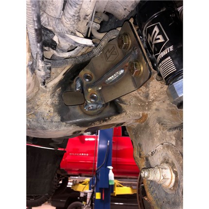Prevents frame flex at the factory idler support. Will work with factory or aftermarket idler supports. Direct bolt in installation on idler side of gusset, frame side will need to be welded directly to frame for maximum performance.