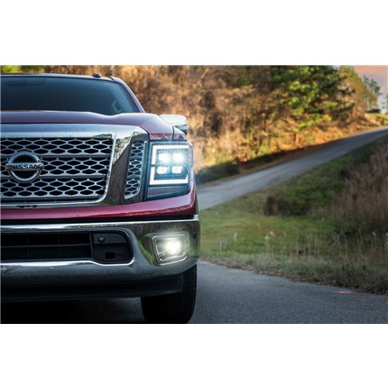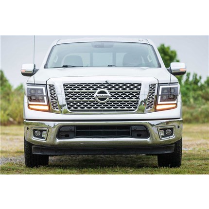DAYTIME RUNNING LIGHT: The design of the DRL on the Morimoto XB LED heads for the Titan is almost identical to the brand new high-end OEM LED headlights from Nissan - which is fitting to the overall design of these trucks. The LED daytime running light is powered by Osram 5000K LEDs and is insanely bright, easily visible during the day! The DRL will also dim down when the parking lights or low beams are on for compliance reasons. When the DRL activates, each of the four projectors illuminate in a unique dual-intensity start-up sequence which looks killer!