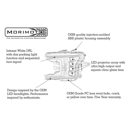 OEM Plus: We live, eat, and sleep headlights. While the F150 LEDs from Morimoto cost a bit more relative to other options in the aftermarket; as the saying goes "you pay for what you get". We've seen it all, and their fit and finish is far superior to everything else out there. Guaranteed.