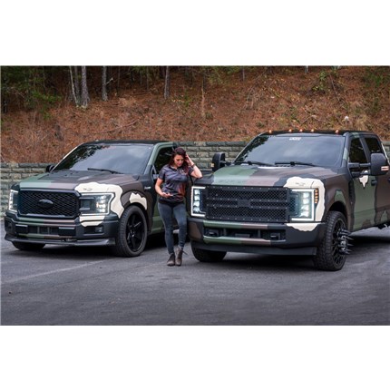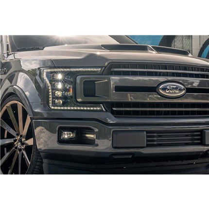 They Look: Amazing. At least in our opinion! The design of the second Gen F150 LED heads was inspired by the OEM LED headlights from the new Ford Expedition. The subtle elements incorporated in their design are more than enough to make them stand out, but they're clean enough to be considered top of the line original equipment to those who don't know any better. The piano black trim and smoked gray diffusers keep the color scheme neutral, and the quad kuria-optic projectors are as modern as it gets.