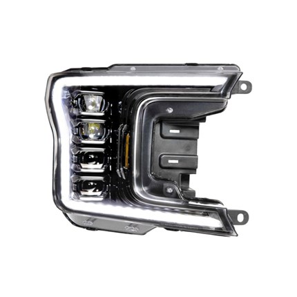 More Light Output: The original F150 XB heads used two projectors on top for the low beam, and two on the bottom as a dedicated high beam. The new setup utilizes all four projectors for the low beam and has a dual Bi-LED setup for the high beam. The results? 200% more light output and a better distribution of light for improved visibility in the distance and off to the sides of the road. Asked and answered!