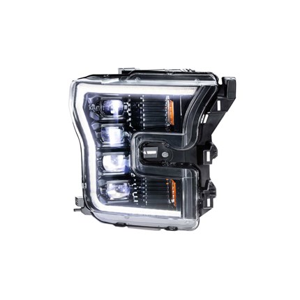More Light Output: The original F150 XB heads used two projectors on top for the low beam, and two on the bottom as a dedicated high beam. The new setup utilizes all four projectors for the low beam and has a dual Bi-LED setup for the high beam. The results? 200% more light output and a better distribution of light for improved visibility in the distance and off to the sides of the road. Asked and answered!
