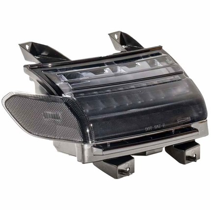 DRL / Switchback: The upper row of optics acts as a high-intensity white daytime running light, while the lower row is responsible for the amber switchback turn signal. The signal setup will automatically dim the white DRL, flash, and then the DRL will return to full intensity once the signal stops.
