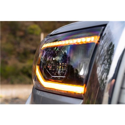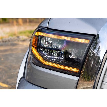 Amber Sequential LED DRL: This is the real game changer for the Toyota guys crowd out there. The LED daytime running light on this version of the XB LED headlights is powered by Amber Osram LEDs, looks amazing, is insanely bright…easily visible during the day! A separate optic that's dedicated to the turn signal function uses another row of amber LED's to produce a full sequential turn signal. For those who are a bit more traditional, the turn signal can also be setup to run as solid on/off style too.