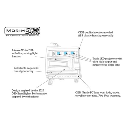 OEM Plus: At Morimoto we live, eat, and sleep headlights. While the Silverado LEDs from Morimoto cost a bit more relative to other options in the aftermarket; as the saying goes "you pay for what you get". We've seen it all, and their fit and finish is far superior to everything else out there. Guaranteed.