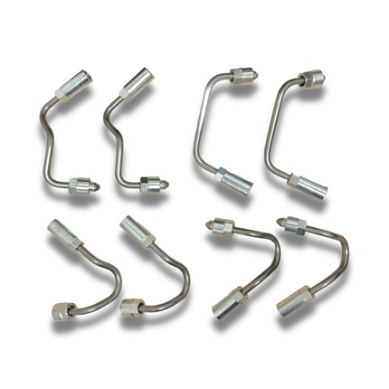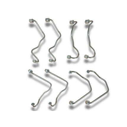 Complete set of high pressure Duramax fuel lines by Merchant Automotive. These lines connect from the fuel rail to the fuel injector. Built to meet or exceed OE specifications for proper fit and performance.