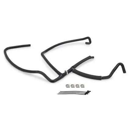 The 6.7L Powerstroke is a powerhouse built for serious work, but its factory coolant overflow hose uses plastic fittings that are known to crack and leak over time. Left unchecked, these leaks can lead to overheating and unexpected downtime. Upgrade your cooling system with a Mishimoto one-piece silicone Y-hose designed specifically for your 6.7L Powerstroke to eliminate those weak points and keep your truck on the road. This direct-fit hose replaces those old, brittle plastic connections with a seamless silicone design that removes common failure points. A built-in one-way valve maintains proper coolant flow, and protective heat sleeves help guard the hose against high engine bay temperatures. Made from multi-layer silicone that outlasts the factory rubber, this hose is built to handle the demands of the Powerstroke platform. Each kit includes new worm-gear clamps for a consistent, reliable seal and is backed by the Mishimoto Lifetime Warranty.
