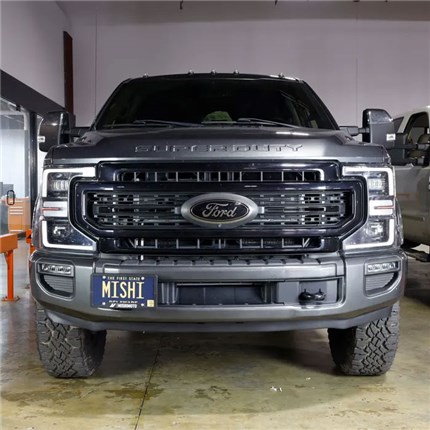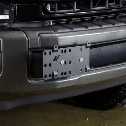 Auto manufacturers have a knack for placing license plates in the most unusual locations, often ruining vehicle aesthetics and in some instances, impacting vehicle performance. For the 2011-2024 Ford F-250 or F-350, mounting the license plate in the center of the bumper blocks vital airflow passing through the cooling stack. This Mishimoto License plate relocation kit allows fresh airflow to pass through the transmission cooler, AC condenser, and radiator, ensuring optimal performance from all systems. Our bracket is constructed from 3mm-thick steel, ensuring high strength and rigidity. To provide resistance against corrosion, our bracket is powder coated in a durable black finish. The license plate bracket features multiple mounting locations, allowing for bumper-mounted accessories like light bars or winches. Our License plate relocation kit includes all stainless-steel hardware needed for mounting, as well as a Mishimoto license plate frame for a clean install. As with all our products, this kit includes our signature Mishimoto Lifetime Warranty.