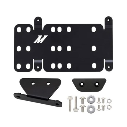 Auto manufacturers have a knack for placing license plates in the most unusual locations, often ruining vehicle aesthetics and in some instances, impacting vehicle performance. The mounting the license plate in the center of the bumper blocks vital airflow passing through the cooling stack. This Mishimoto License plate relocation kit allows fresh airflow to pass through the transmission cooler, AC condenser, and radiator, ensuring optimal performance from all systems. Our bracket is constructed from 3mm-thick steel, ensuring high strength and rigidity. To provide resistance against corrosion, our bracket is powder coated in a durable black finish. The license plate bracket features multiple mounting locations, allowing for bumper-mounted accessories like light bars or winches. Our License plate relocation kit includes all stainless-steel hardware needed for mounting, as well as a Mishimoto license plate frame for a clean install. As with all our products, this kit includes our signature Mishimoto Lifetime Warranty.