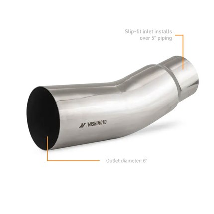 Product Name: Mishimoto Turndown Exhaust Tip, 5" Inlet, 6" Outlet Manufacturer: Mishimoto Manufacturer Part #: MMEXH-TIP-TD56 Thoroughbred Diesel Part #: MIMMMEXH-TIP-TD56