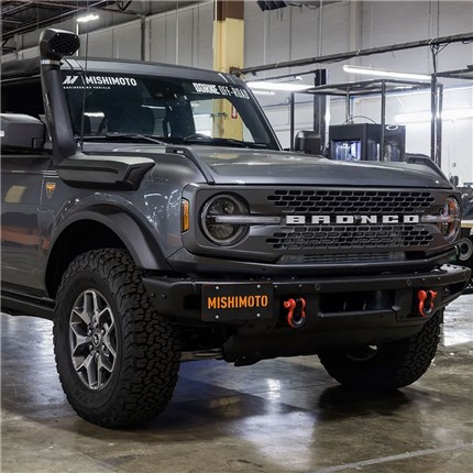 Auto manufacturers have a knack for placing license plates in the most unusual locations, often ruining vehicle aesthetics and, in some instances, impacting vehicle performance. The Bronco mounts the front license place in an awkward location above the bumper. This allowed Ford to offer multiple bumper options, but it makes the front end look clunky and, more importantly, blocks airflow to the cooling stack. Moving the license plate with this Mishimoto license plate relocation kit allows fresh airflow to pass through the cooling stack and cleans up the look of your Bronco's front end. To keep with Ford's modular theme and allow space for bumper-mounted accessories, our license plate bracket features multiple mounting locations, letting you move it around as needed to fit your build. This kit is designed to fit either the metal modular bumper and installs in under 30 minutes. Our bracket is constructed from 3mm-thick steel, ensuring high strength and rigidity. To provide resistance against the elements and corrosion, our bracket is powder coated in a micro-wrinkle black finish and includes stainless steel hardware. As with all our products, this kit includes our signature Mishimoto Lifetime Warranty.
