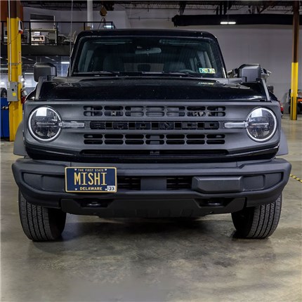 Auto manufacturers have a knack for placing license plates in the most unusual locations, often ruining vehicle aesthetics and, in some instances, impacting vehicle performance. The Bronco mounts the front license place in an awkward location above the bumper. This allowed Ford to offer multiple bumper options, but it makes the front end look clunky and, more importantly, blocks airflow to the cooling stack. Moving the license plate with this Mishimoto license plate relocation kit allows fresh airflow to pass through the cooling stack and cleans up the look of your Bronco's front end. To keep with Ford's modular theme and allow space for bumper-mounted accessories, our license plate bracket features multiple mounting locations, letting you move it around as needed to fit your build. This kit is designed to fit either the standard plastic bumper and installs in under 30 minutes. Our bracket is constructed from 3mm-thick steel, ensuring high strength and rigidity. To provide resistance against the elements and corrosion, our bracket is powder coated in a micro-wrinkle black finish and includes stainless steel hardware. As with all our products, this kit includes our signature Mishimoto Lifetime Warranty.