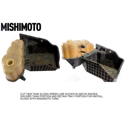 Notes: *1 Cutting of the stock battery tray is required to remove the stock degas tank from the battery tray. Please see the included note card or installation video for cut instructions.If your stock battery tray cannot be reused, a new degas tank and battery tray can be purchased from Ford under part number: 9C3Z-8A080-AA*2 Mishimoto does not provide powder coating, anodizing, or hydro-dipping services for this product. Customers who purchase the natural finish must source these services independently.The natural finish may show some surface imperfections that will not affect powder coating or other customization.After a few heat cycles, Mishimoto recommends checking the sight tube on the side of the degas tank to confirm proper coolant level.