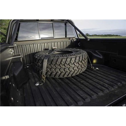 N-Fab Truck Bed Mounted Rapid Strap Tire Rack Features: