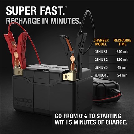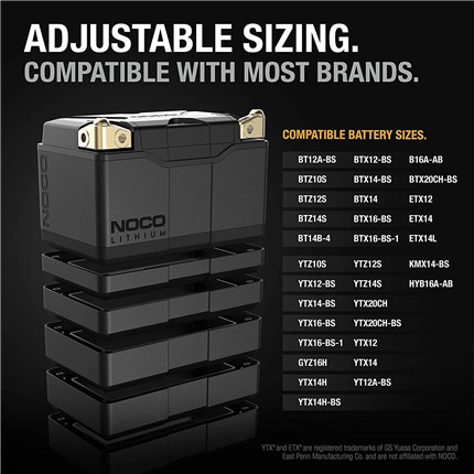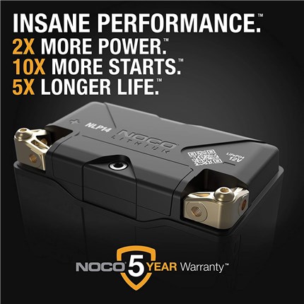 Introducing the all-new NOCO Lithium NLP14 12V Lithium Powersport Battery, a Group 14 battery, rated at 4Ah (51Wh) and 500-amps of starting power. It's better than lead-acid motorcycle batteries in almost every way: no sulfation, no activation, no acid, no maintenance, no water needed, and it comes fully charged and ready to install.