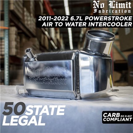 The No Limit Fabrication 6.7 Power Stroke Intercooler that comes with a Lifetime Warranty, will add throttle response, up to 2 PSI increase of boost, lower egt's, decrease spool-up time, and add low end power and torque. Adding up to of 20 Horsepower and 60 Ft/Lb of Torque. Customers have also seen up to 1 MPG gain with only this modification. This intercooler substantially adds reliability over the factory unit and is sure to make your driving experience better!