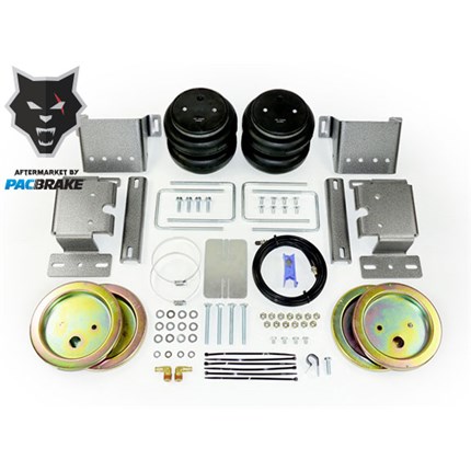 Your truck's factory suspension was designed as a compromise between capability and comfort. When hauling heavy loads, the rear springs can be pushed to the limit - resulting in excessive bounce, sagging ride height, and an overall feeling of instability. And, if you are hauling these massive loads on regular basis your truck needs some extreme duty air springs to level that load. With the simple addition of an Alpha XD 7500 lb. Air Spring Suspension Kit by Pacbrake, you can distribute weight evenly to your tires, supporting any load without overtaxing your existing system.
