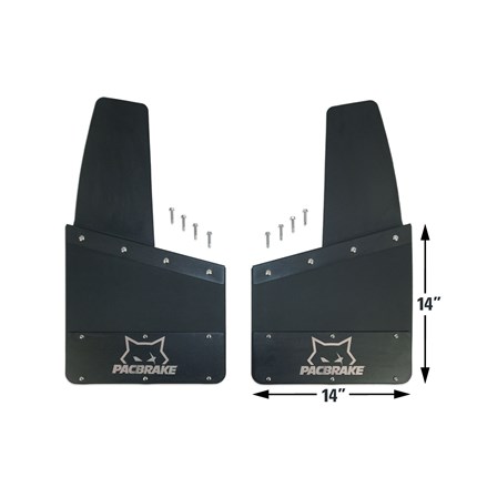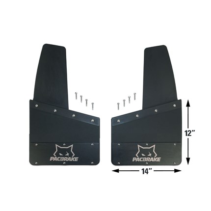 Product Name: Pacbrake Kickback-Style Mud Flaps Manufacturer: Pacbrake Thoroughbred Diesel Part #: PACMUDFLAPS Fitment Notes: Universal