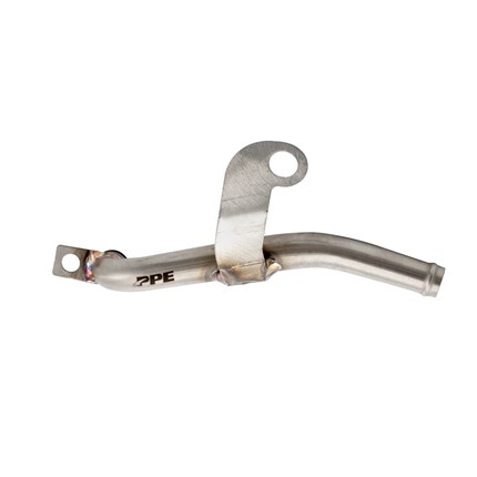 Product Name: PPE 304 Stainless Steel Coolant Reroute Tube (OEM bend) - RAW - 2004.5-2007 GM 6.6L Duramax Manufacturer: PPE Manufacturer Part #: 119000300 Thoroughbred Diesel Part #: PPE119000300 Fitment Notes: 2004.5-2007 GM 6.6L Duramax