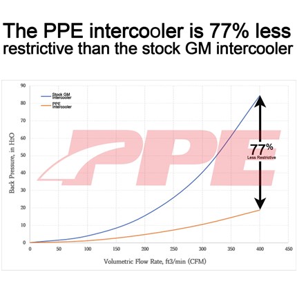 The PPE high-performance air-to-water Intercooler adds both style and performance to your 3.0L LM2, LZ0 Duramax. The PPE intercooler has increased cooling efficiency due to its all-aluminum Bar And Plate-style construction, superior fin layout, and 2.4 times larger core. Cooler and denser charge air can also help reduce exhaust gas temperature (EGTs) and increase fuel efficiency. It also significantly improves the airflow and lowers the pressure drop which results from the flow-optimized, cast aluminum end tanks and a larger less restrictive core structure. The PPE intercooler is 77% less restrictive than the stock GM intercooler. The kit is complete with a die-cast support bracket, a billet aluminum turbo adapter that replaces the turbo resonator, and PPE Performance Silicone Couplers and Coolant Hoses.