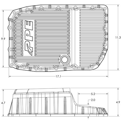 Cast from high-grade A356.0-T6 aluminum alloy, the PPE transmission pan offers 1.5 quarts of additional fluid capacity, ensuring long-lasting heat management and performance.