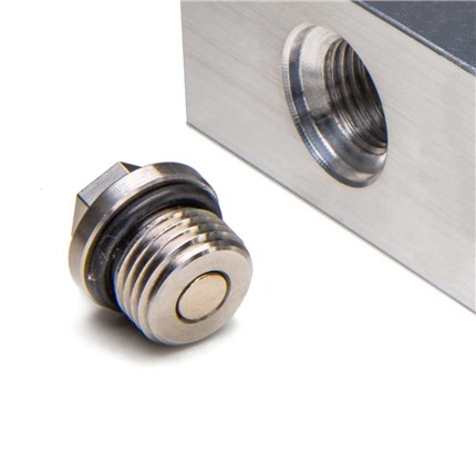 The PPE Bypass eliminates the mechanical valve which maximizes fluid flow from the transmission cooler. For further protection, a neodymium magnet equipped service plug has been added. The removable plug traps ferrous debris and can be accessed to remove particles from the system. The factory part does not have this feature.
