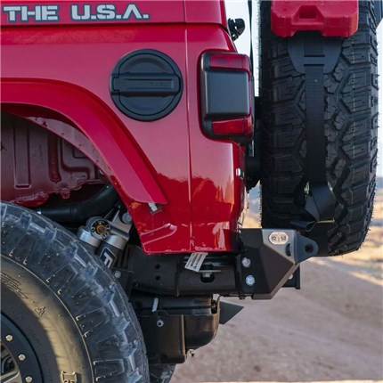 Rock Slide Engineering gives you a sleek, finished, look with the Rigid Shorty Rear Bumper. It is built with 10-gauge steel, designed to follow factory lines and mate up with stock fender flares. The shorty will give you amazing approach angles when you are out wheeling. Comes with an integrated recovery hitch and recovery points. We use a state-of-the-art automated powder coat system to acid etch the raw base material in preparation for the textured black topcoat. This product utilizes the factory mounting points for an easy, no-drill installation.