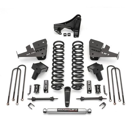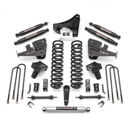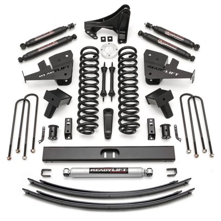 Readylift's Complete Big Lift Kits give your truck the complete lift kit to receive the ultimate lift. ReadyLIFT offers 6.5" lift kits and other sizes to fit a variety of trucks. Includes coil springs, rear lift blocks, leaf spring packs, and billet aluminum spacers. Readylift's kits are specifically designed to give you a quality lift and rugged off road strength while maintaining the factory ride on the street.