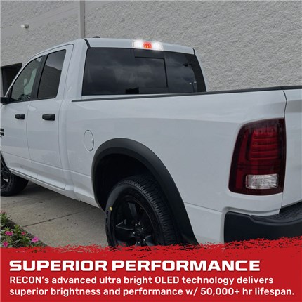 With a bright red LED 3rd brake light, flanked by blazing white LED cargo lights on each side, nothing says Dodge pride like this kit. From the moment you open the box, you'll be impressed with the clear lens & high quality fit & finish of the entire 3rd brake light assembly. RECON OLEDs are energy-efficient, have a 50,000+ hour lifespan, and are impact-resistant with military grade reinforced abs plastic lens to ensure long lasting durability.