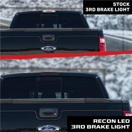 With a bright red LED 3rd brake light, flanked by blazing white CREE XML white cargo lights on each side, nothing says Ford pride like this kit. From the moment you open the box, you'll be impressed with the smoked lens & high quality fit & finish of the entire 3rd brake light assembly. You can rest assured that it will fit your truck properly & that RECON has you covered.