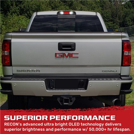 With a bright red CREE XML 3rd brake light, flanked by blazing white LED cargo lights on each side, nothing says GMC or Chevy pride like this kit. From the moment you open the box, you'll be impressed with the smoked lens & high quality fit & finish of the entire 3rd brake light assembly. RECON OLEDs are energy-efficient, have a 50,000+ hour lifespan, and are impact-resistant with military grade reinforced abs plastic lens to ensure long lasting durability.