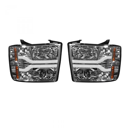Part # 264195CLC - Chevrolet Silverado 07-13 (2nd GEN Single-Wheel & 07-14 Dually) PROJECTOR HEADLIGHTS w/ Ultra High Power Smooth OLED HALOS & DRL - Clear/Chrome