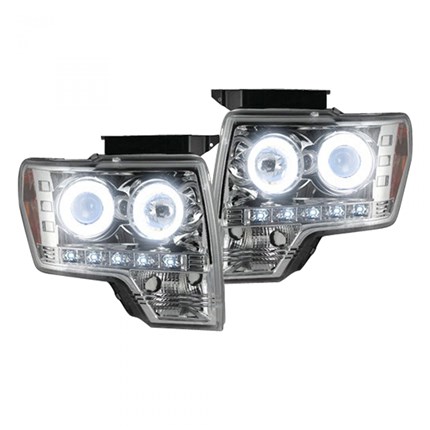 RECON Part # 264190CLCC Ford F-150 & Ford Raptor 09-13 PROJECTOR HEADLIGHTS Clear Lens w Chrome Inner Housing w/ CCFL HALOS & Daytime Running Lights - Clear / Chrome