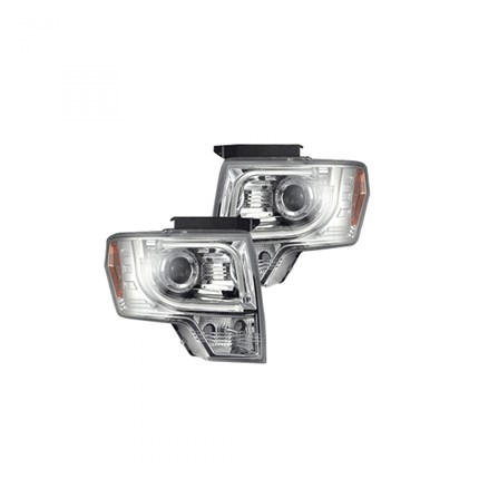 RECON Part # 264273CLC - Ford F150 & RAPTOR 13-14 PROJECTOR HEADLIGHTS with Ultra High Power Amber LED Turn Signals (Attn: This item fits 2013-2014 Lariat, King Ranch, FX2, FX4, & RAPTOR with OEM Projectors) - Clear / Chrome