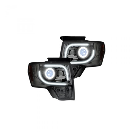 264190CLC - Ford F150 & RAPTOR 09-14 PROJECTOR HEADLIGHTS w/ Ultra High Power Smooth OLED HALOS & DRL (Attn: Does NOT fit 13-14 Lariat, King Ranch, FX2, FX4, or RAPTOR with OEM Projectors & HIDs) - Clear / Chrome