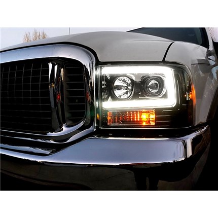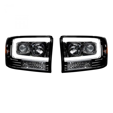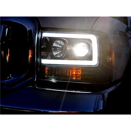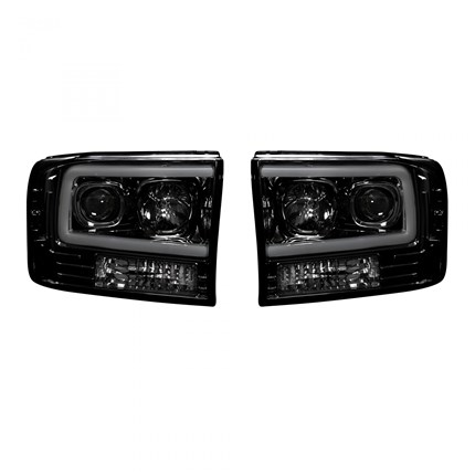 Product Name: Recon Ford Super Duty 99-04 F250/350/450/550 Projector Headlights OLED Halos DRL Smoked/BlackManufacturer: ReconManufacturer Part #: 264192BKCThoroughbred Diesel Part #: REC264192BKC