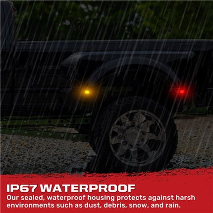 RECON's premium 4-piece fender lights for your Super Duty with ultra bright LEDs with Smoked or Clear Lens options. They are available in Dual Amber/Red LED Lights. These LED lights are designed to add style and functionality to your truck. Ideal for turbo diesel dually trucks, they mount neatly on the rear fenders before and after the rear tire, but can also be installed on standard single-wheel trucks and SUVs with some minor drilling and wiring required. Each kit includes four lights (two per side), functioning as running/parking lights. As a direct plug-n-play O.E.M. replacement, installation is a breeze, ensuring a perfect fit for any cab type, from regular to crew.