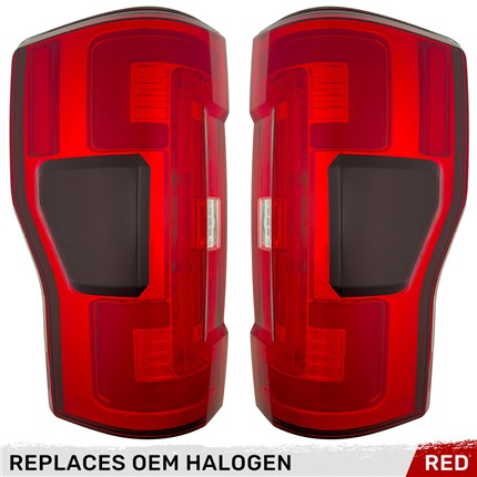 Looking for the hottest new OLED tail lights? Look no further than this set from RECON Truck Accessories, suitable for your 2017-2019 Ford Super Duty F250, F350, F450, F550. These LED tail lights feature ultra high-power OLEDs, they're the brightest we offer with a unique lens color that's sure to stand out in a crowd. Make sure you order the correct set for your truck based on whether you have OEM factory-installed LED tail lights or factory installed OEM Halogen tail lights. CLICK HERE TO SEE ALL OPTIONS.