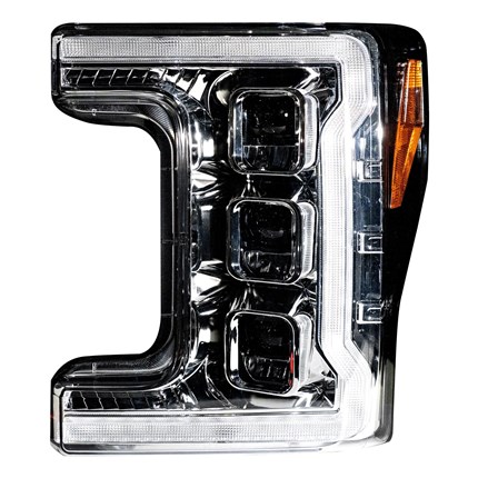 Ford Superduty 20-22 F250/F350/F450/F550 (Replaces OEM Halogen Style Head Lights Only) TRIPLE PROJECTOR BEAM LED HEADLIGHTS w/ Ultra High Power Smooth White OLED DRL & High Power Smooth Amber Sequential OLED Turn Signals - Clear / Chrome